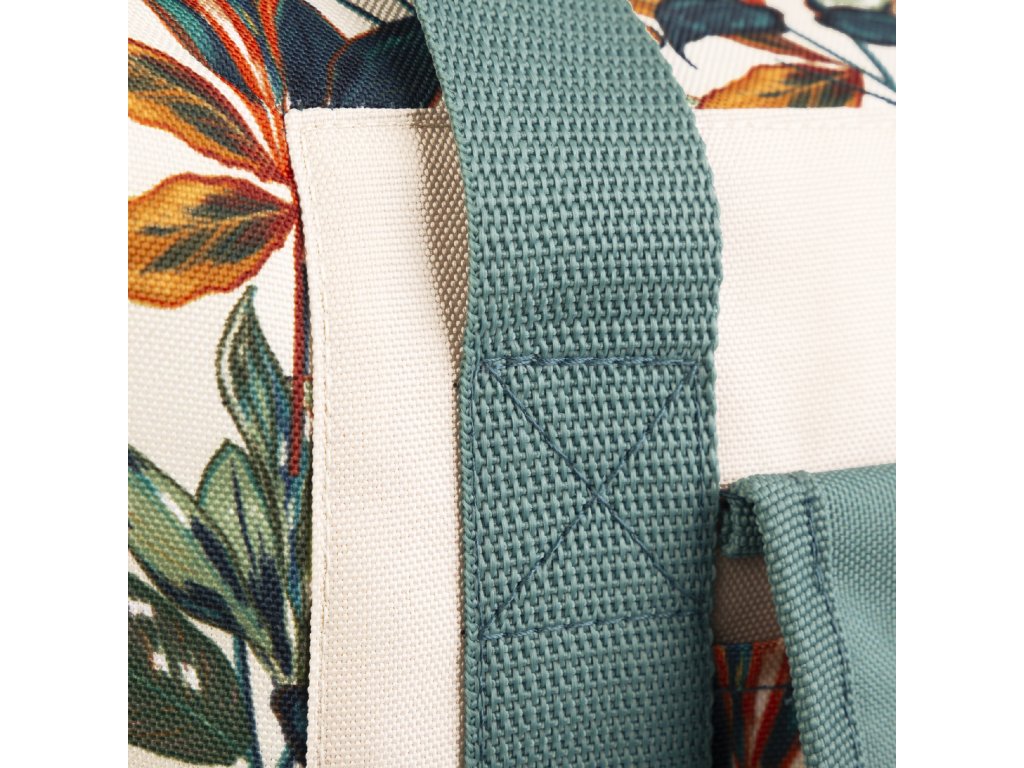 Praktické hlavné vrecko na zips a menšie predné vrecko na suchý zips vám pomôžu udržať si vo veciach poriadok a mať najdôležitejšie drobnosti vždy po ruke. Silné a odolné ramenné popruhy zaručujú pohodlné prenášanie aj ťažšieho nákladu (až 15 kg). A čo je najlepšie? Výberom tejto tašky aktívne prispievate k ochrane našej planéty, pretože na jej výrobu bolo recyklovaných 6 plastových fliaš. Jej štýlový kvetinový design navyše podčiarkne váš osobitý štýl.